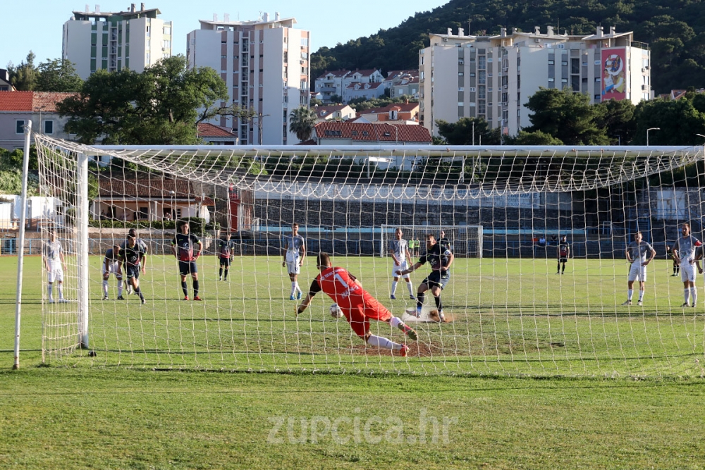 Župa je odigrala odličnih prvih 30 minuta u kojima je bila bolji protivnik, stvorila nekoliko prilika i stigla do vodstva rijetko viđenim udarcem Tonija Soldića u 31. minuti s dvadesetak metara pod samu prečku nemoćnog golmana Neretvanca Perića.