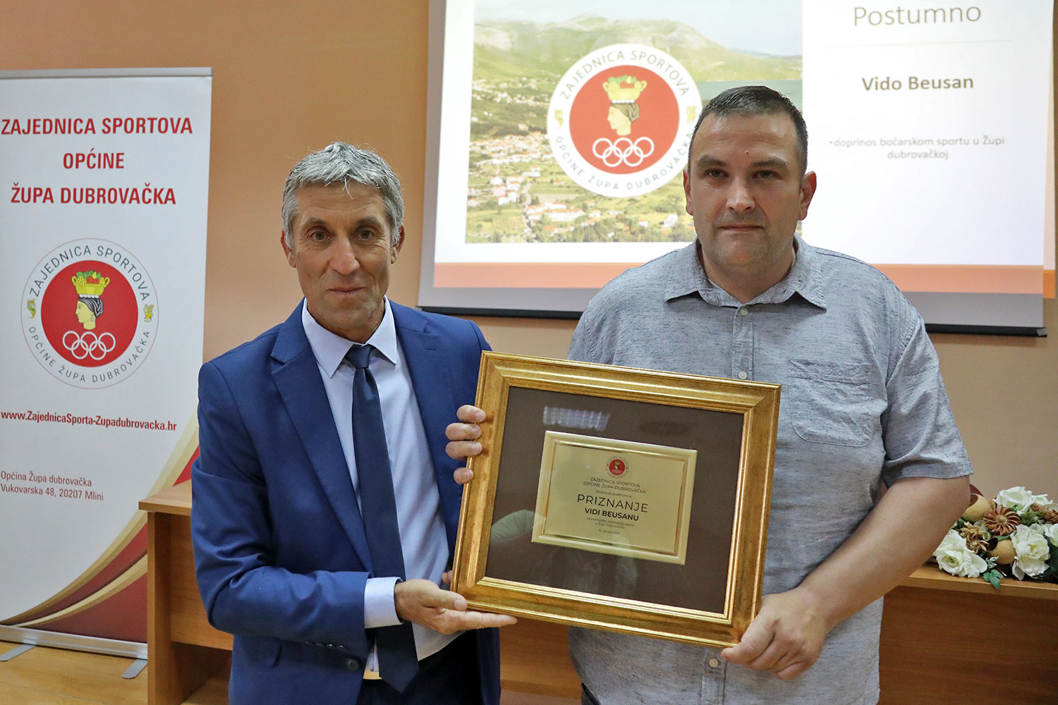 Prva nagrada posthumno je dodijeljena boćaru Vidu Beusanu. Vido Beusan rođen je 1.9.1946 godine, a umro je 4.3.2022 godine. 1974 godine osniva klub BK Rijeka koji već u prvoj godini broji preko 80 članova. Vido je sudjelovao pri osnivanju dubrovačkog boćarskog saveza. Višestruki je prvak županije u raznim disciplinama, a osvajao je i državne medalje. Bio je cijeli život u klubu u ulozi igrača i voditelja. Najveći uspjeh mu je bio nastup u prvoj ligi bivše države krajem 80-tih godina.